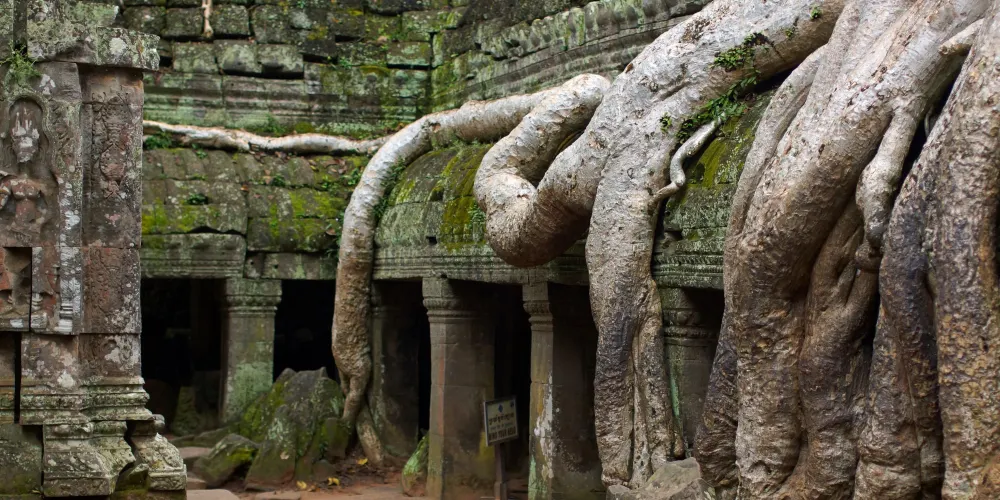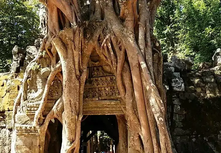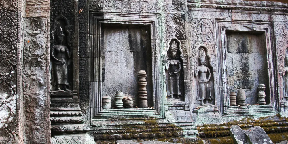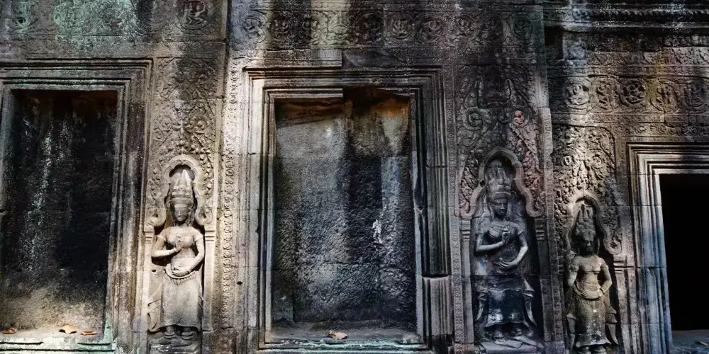 涅盤宮也叫龍蟠水池,意為纏繞的巨蛇。它由中央的一個大水池和周圍的四個小水池組成,在大水池中央的小島上有一座依照須彌山而建的石塔寺廟,塔上雕刻著兩條纏繞在一起的蛇神。