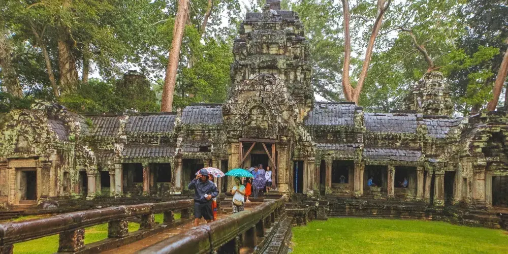 遊覽涅盤宮尽量避開旱季,否則池水乾涸,景色會大打折扣。前往時需要走一條兩百多米長的棧道,兩側是生長在水中的樹木,在藍天白雲的襯托下帶有幾分神秘的感覺。來到中央水池前,就可以看到小島上的石塔寺廟,不過隔著柵欄遊客無法入內參觀,只能在周圍觀望。