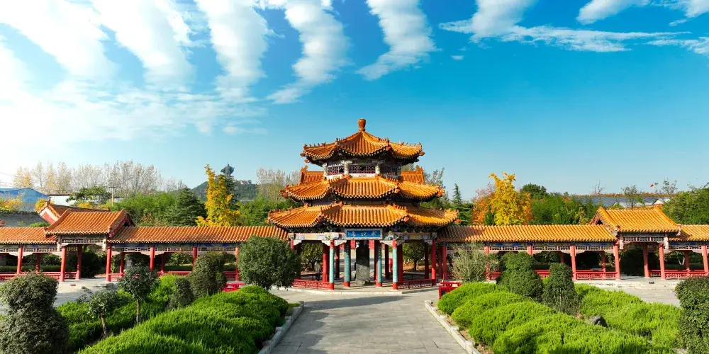 秦朝末年,劉邦被縣令指派押送一批農夫到驪山為秦始皇修造陵墓。行至商丘永城芒碭山時,突遇白色大蛇攔路而臥,眾人驚恐不安。劉邦拔劍上前,將蛇斬作兩段。漢文帝時,為紀念劉邦在此斬蛇造反,在斬蛇處立碑建廟。歷經千年,碑廟幾經損壞,又幾經修建。