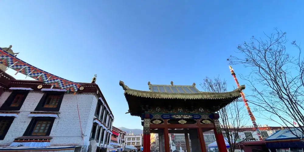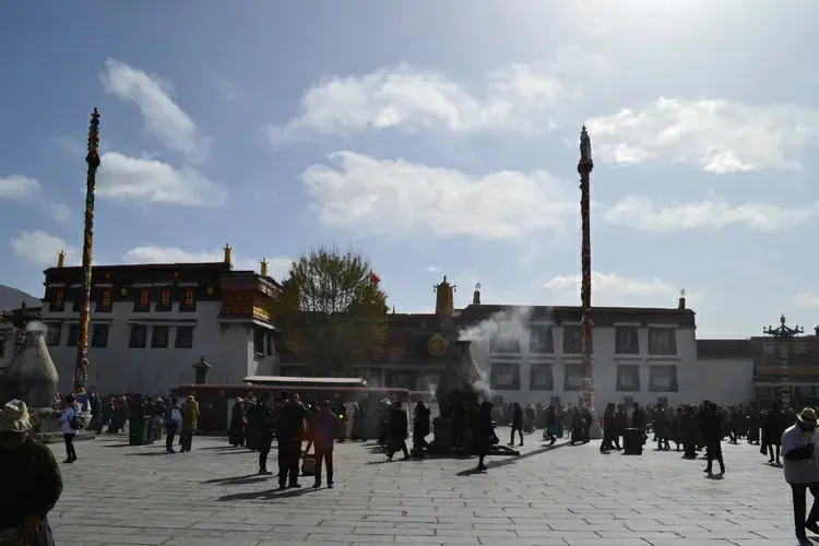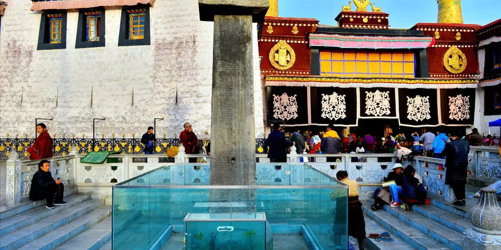 大昭寺,藏語為“覺康”,又名“祖拉康”,是藏傳佛教信徒朝拜的終點,在他們的心中,大昭寺之神聖,並不遜於布達拉宮。不論從地理位置上,還是在藏傳佛教信徒的心目中來説,大昭寺都是名符其實的藏傳佛教聖地和中心,在藏傳佛教史上擁有極其崇高而聖潔的地位。大昭寺始建於公元七世紀中葉,是藏王松贊幹布為了安放其王妃尼泊爾尺尊公主,從家鄉加德滿都帶來的釋迦牟尼8歲等身佛像而建,公元1409年,格魯派創始人宗喀巴大師在大昭寺宏揚佛法,舉行傳昭大法會,從而奠定了其在藏傳佛教史上的重要地位。公元八世紀,大唐文成公主入藏時從長安帶來的釋迦牟尼十二歲等身像供奉於大昭寺內,成為大昭寺的鎮寺之寶,是遊客及前往朝拜的人必不可錯過的看點之一。