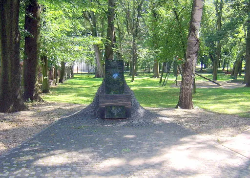 Tablica pamiątkowa w miejscu dawnej synagogi