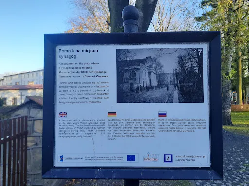 > Tablica pamiątkowa w miejscu dawnej synagogi