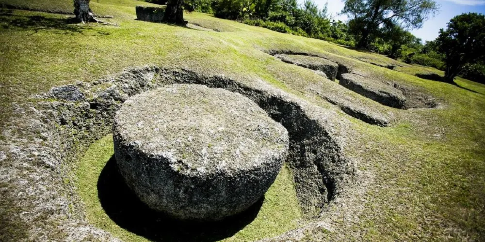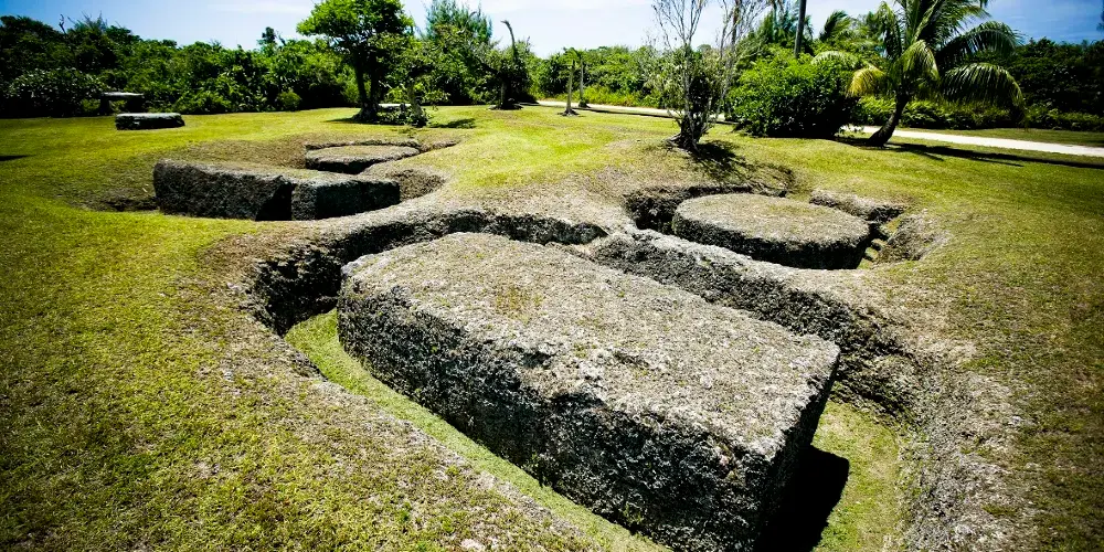 拉提石採石場是古代查莫洛人制作拉提石的作業場地。經過科學考證,拉提石是由挖掘出的整塊珊瑚石灰石為原料打磨成型。在採石場中仍有大量半成品保留至今。而古人運輸、組裝這些重達數十噸的巨石的方法至今仍是個謎團。