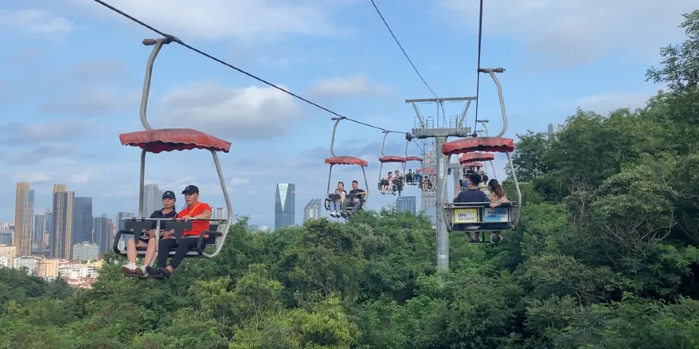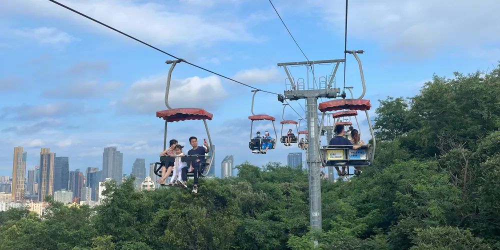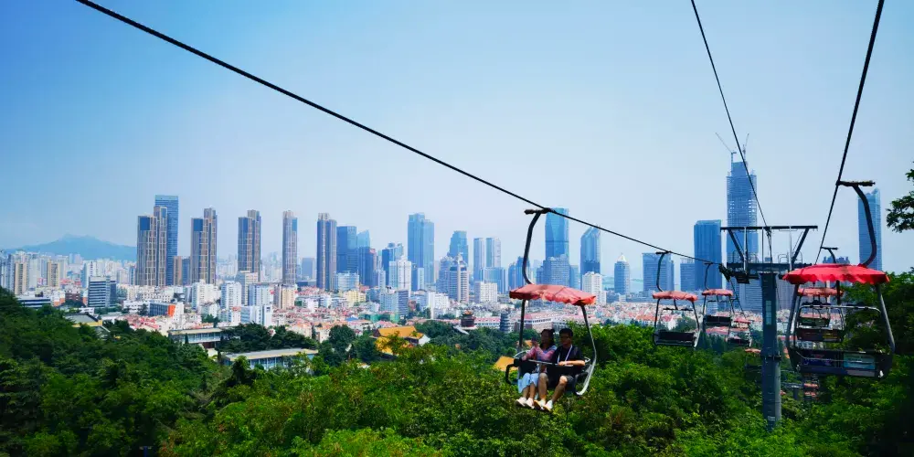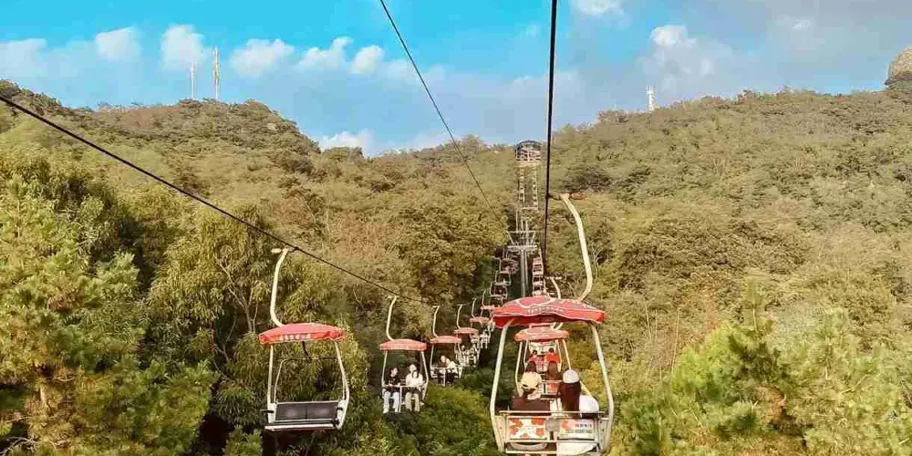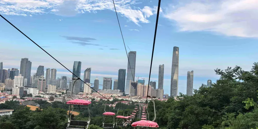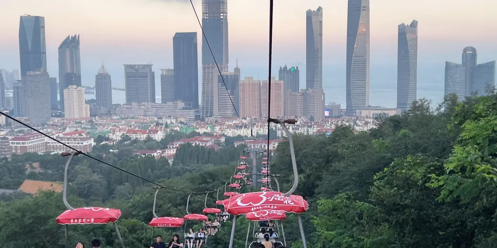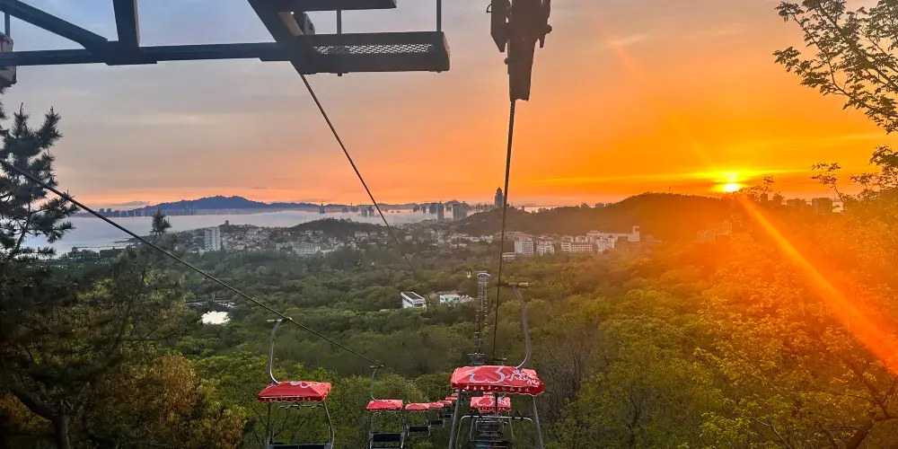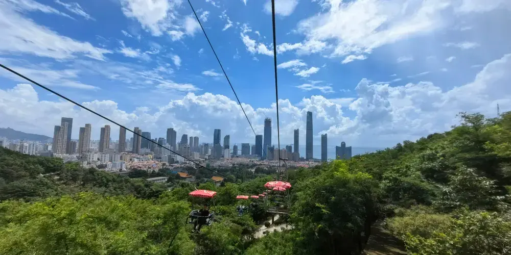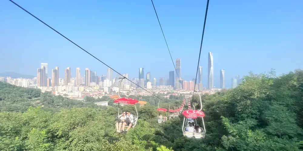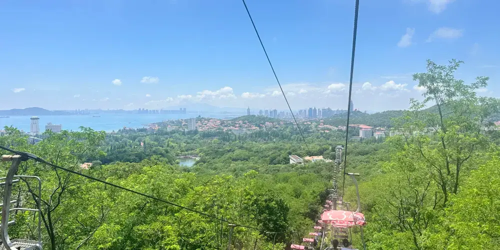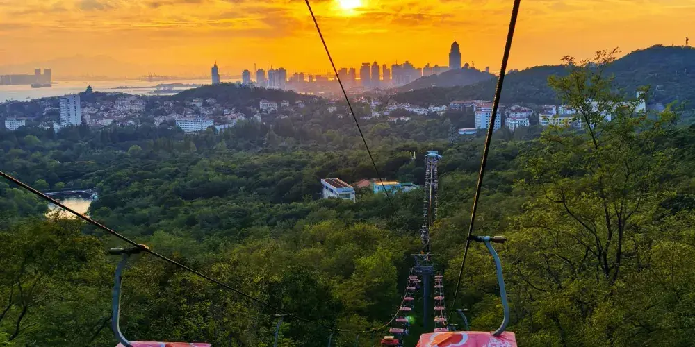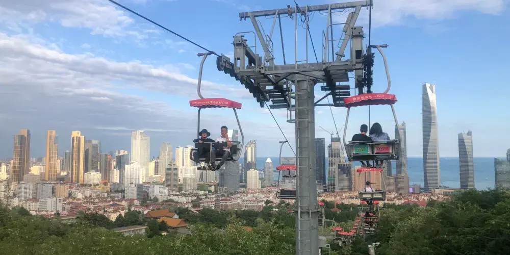 太平山觀光索道位於青島中山公園內,是一條連接城市繁華與自然寧靜的空中走廊,乘觀光索道升至高處,可一覽青島市區景色。索道設有中山公園、湛山寺、太平山三個站點,全長1100米。索道為露天觀景,設計為兩人同行,東可遠眺嶗山,西可俯瞰黃海。乘坐索道,遊客可以穿梭於茂密的樹叢間,凌駕於樹梢之上,盡情享受「紅瓦綠樹,碧海藍天」的城區魅力。在都市的繁華與自然的寧靜之間,體驗一場夢幻般的旅行。