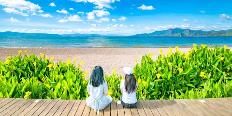 撫仙湖景區位於澄江縣以南5公里處,被視為昆明人的後花園。撫仙湖景區面積很大,沿湖分佈著好幾個小景區,可以隨意去湖邊散步享受自然風光,也可以進入收費的景區內游玩。從湖邊可以走到筆架山,爬上山便能俯瞰撫仙湖和祿充村,一幅自然美景呈現在眼前。