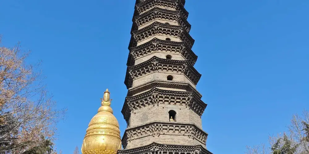 太子靈蹤塔始建於北宋,八角十三層樓閣式建築,體現了宋代的建築風格。靈塔金頂輝煌,瑰麗壯觀。