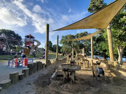 Takapuna海灘邊的一座小型遊樂場,當地的兒童會在這裡遊玩,這裡有滑梯,還有適合兒童玩的攀岩等項目。不遠處就是海灘景色,非常適合休閑。