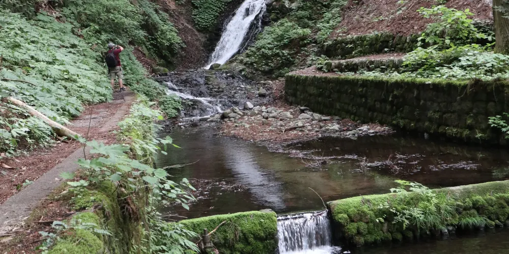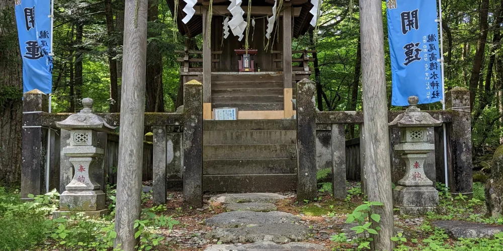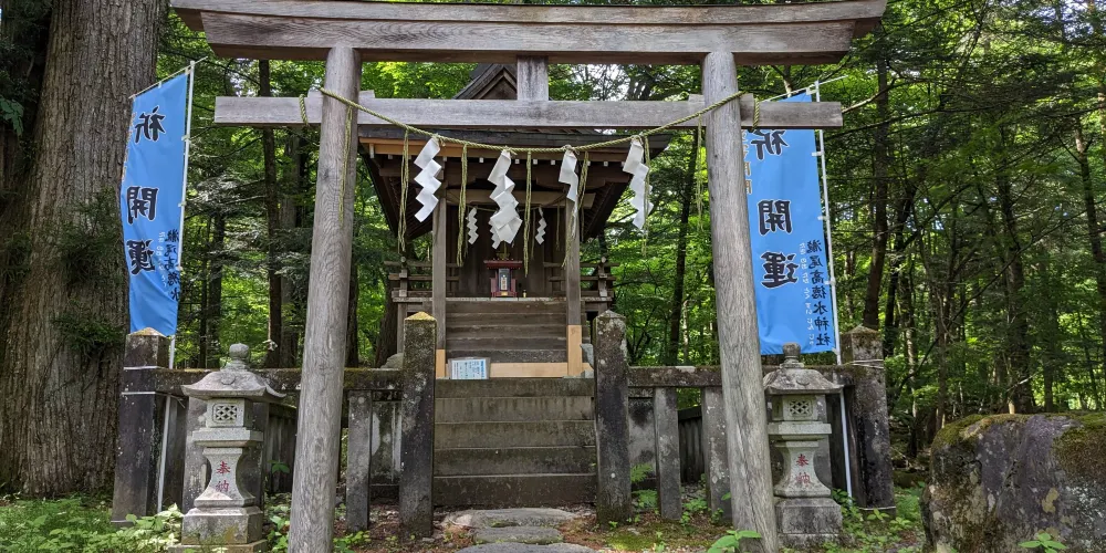 神社前有兩棵杉樹,樹上分別雕刻著一對夫婦和一對父母與孩子,據說守護著婚姻美滿和父母與子女之間的親情紐帶。此外,神社左側還有一處名為「二太羅泉」的泉眼,泉水清澈見底,當地人認為飲用泉水可以帶來平安。