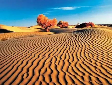 位於和田市西北22公里處,其實就是塔克拉瑪幹沙漠的一部分。由於這裏距和田市區較近,交通較為方便,乘越野車可以直接到達沙漠腹地,所以,如果你想觀賞沙漠的奇麗景色,而又不想在途中花費太多時間的話,英爾力克沙漠倒是個不錯的選擇。這裏照樣有一望無際的沙丘、叮鐺作響的駝鈴。在去沙漠的路上,你還會經過英爾力克水庫,這裏水勢浩淼,是沙漠中難得的一景。登上英爾力克沙漠的沙丘,可以遠眺到綠柳低拂的水面,這一池碧水給單調的黃沙平添了幾許生機。