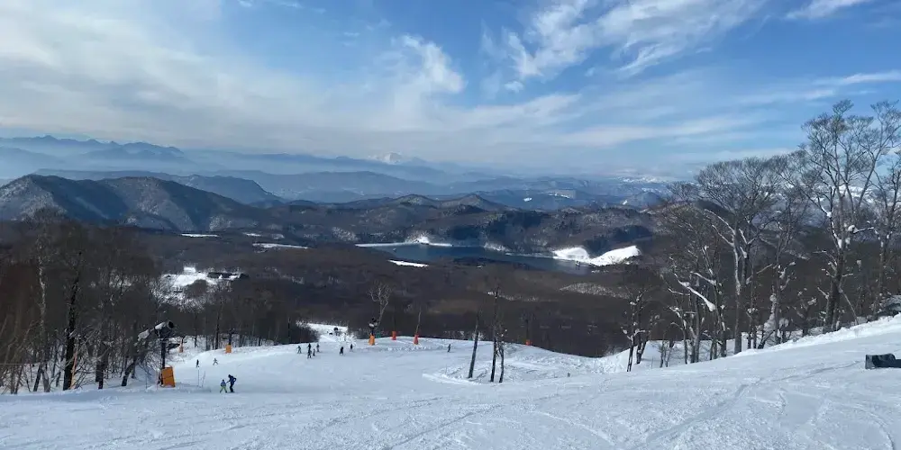 一旦您能夠滑雪,請花點時間從山頂欣賞坦原湖的壯麗景色。