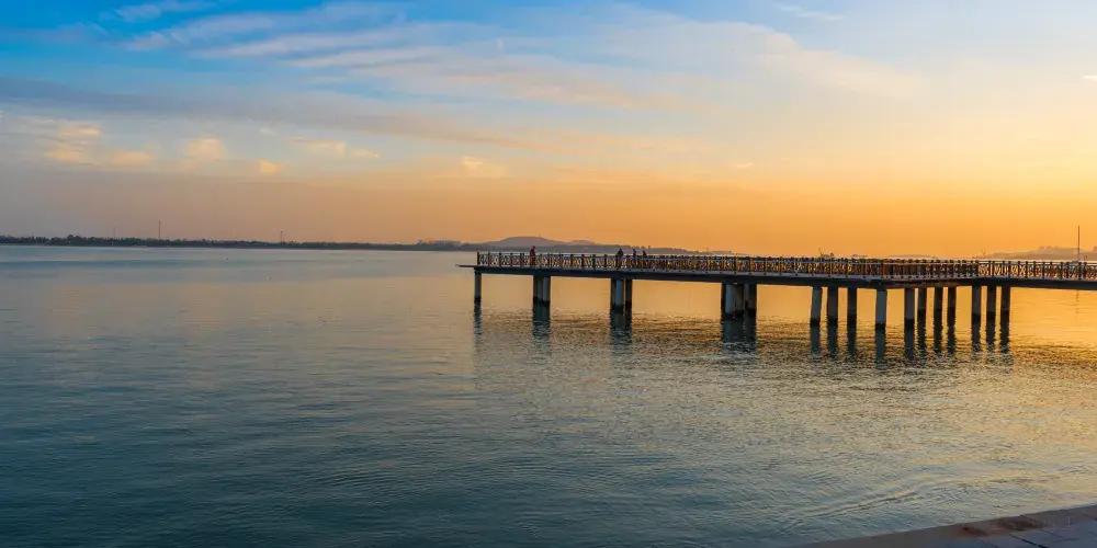 唐島灣濱海公園,位於青島市西海岸的黃島區。是一個圍繞唐島灣兩岬而建的大型海岸公園,分為北岸和南岸兩個區域,具有“海上西湖”和“青島西花園”的美譽。唐島灣以“航海、運河、愛情、運動”為主題,把文化、時尚和體驗相互融合,規劃建設了碼頭休閒娛樂村、濱海伊甸園、濱海休閒廣場、公共藝術園、運河廣場、濱海運動休閒娛樂中心、生態休閒公園等主題遊覽區,公園內小橋靜默,流水潺潺,花開朵朵,讓人彷彿置身江南水鄉。