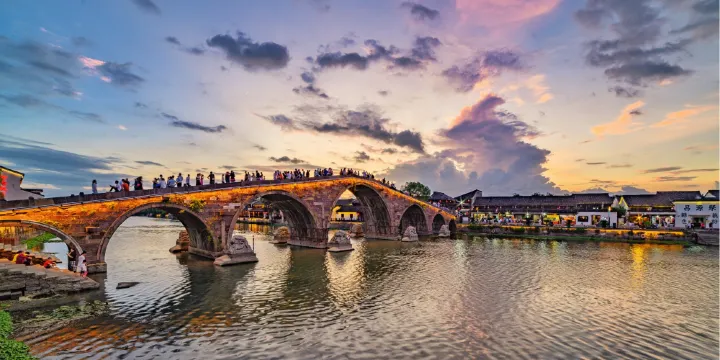 塘棲古鎮位於餘杭境內,是京杭大運河杭州段的起點。運河從塘棲古鎮中穿過,兩岸是古色古香的老房子,河上有古橋相連。塘棲古鎮的枇杷和傳統糕點很出名,每年5月下旬枇杷黃時,這裡總要熱鬧好一陣,不少杭州人來這兒吃枇杷。塘棲古鎮看點古鎮是開放式的街區,逛逛老街是免費的,僅有幾個場地收費。然而,不收費的廣濟橋、乾隆御碑、郭璞井、運河穀倉博物館等倒是古鎮的精華,都是貨真價實的古蹟,博物館也修得相當有格調,能由此感知塘棲古鎮當年作為水運要津的歷史。運河兩岸的水北街、水南街是古鎮的主要遊玩區域,水北街上景點較多,西姚宅、塘棲水北糧站、基督教堂和有名的乾隆御碑都在沿河的街道上。遠遠看去大氣又不失美感,是每個來到塘棲古鎮的人都必到的景點,拍出的照片也堪稱「塘棲古鎮標準照」。古鎮的美味廣濟橋對面的水南街,以及它周邊的街區則集中了不少賣糕點小吃的店,除了原有的傳統糕點,也有些咖啡館、杭幫菜館子,吃吃逛逛很不錯。當地糕點出名的是法根糕點舖,以及朱一堂的綠豆糕、立夏餅等,直到現在還有很多老杭州專門跑到塘棲古鎮來買。到了枇杷季,橋邊的菜場,甚至路邊隨處可見賣枇杷的果農,有貴的白砂枇杷12元左右一斤,是送親友的不錯選擇。水南街附近的市河歷史街區上的三條半弄有些老宅子,也值得前去逛逛。交通小貼士塘棲古鎮的交通很便利,從杭州出發,除了坐公交車,比較有趣的走法是乘坐水上巴士遊覽,全程約7小時。在枇杷節期間,也可以關注一下黃龍旅遊集散區去塘棲古鎮的免費巴士。