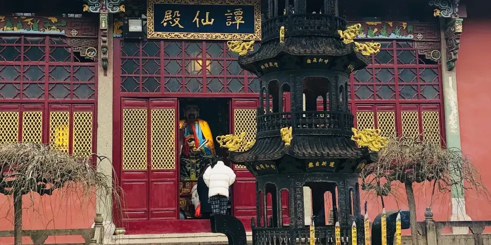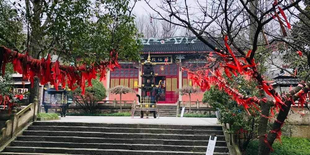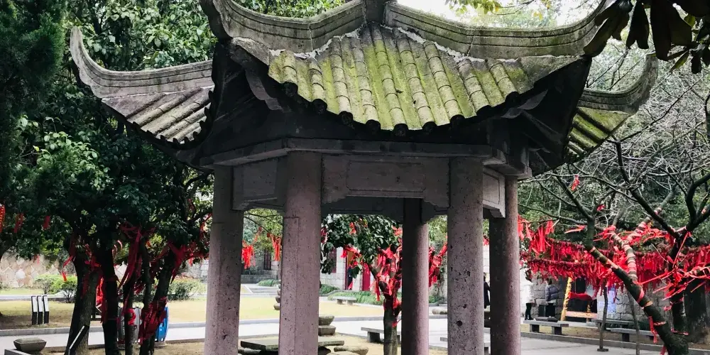 九曲徑登山口在景區南面,這段登山道是石頭砌的階梯路,不算難走,但整個走下來還是要出身汗的。半山腰會經過雲岫庵,東院為遊覽區,西院為生活區,東院有一戲台,古色古香的。進入雲寽庵需另購票10元,有興趣進去看看。繼續沿著古道上山,登上鷹窠頂,天氣晴好時這裡視野開闊,可以俯瞰整個南北湖景區的山湖景色,遠處就是大海,但看不真切。