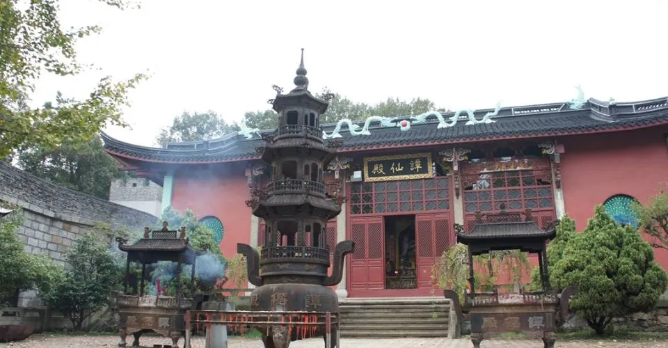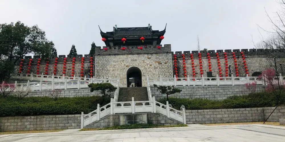 出了鷹窠頂,往白雲閣的路就是一馬平川的水泥路了。白雲閣是座新建的亭子,一樓是茶室,不過消費才可以坐,因此許多人來此只是上到二樓再看一眼南北湖景區全景,然後繼續往西去談仙石城,這裡曾是抗倭的攻勢,如今看到的建築是近年重修的,也挺有氣勢。這裡還有一座道觀,可一併遊覽。