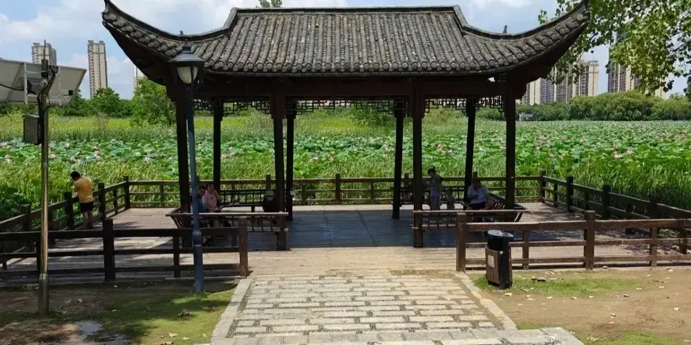 陶沖湖公園位於合肥,公園內有湖泊、籃球場和羽毛球場等,湖上建有長廊和亭子,迷人的景色、清新的空氣,使這裏成為人們休閑放鬆的好地方。