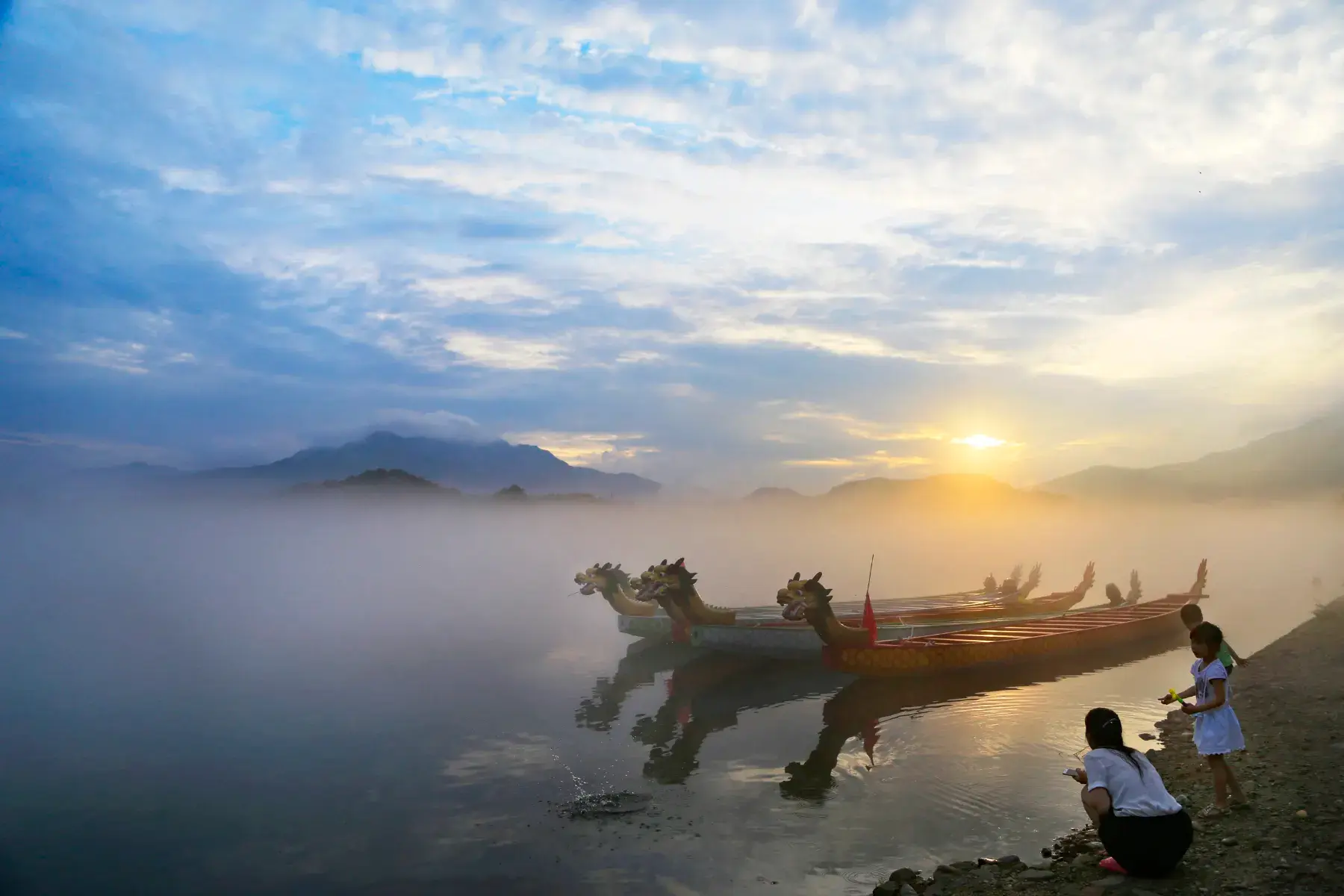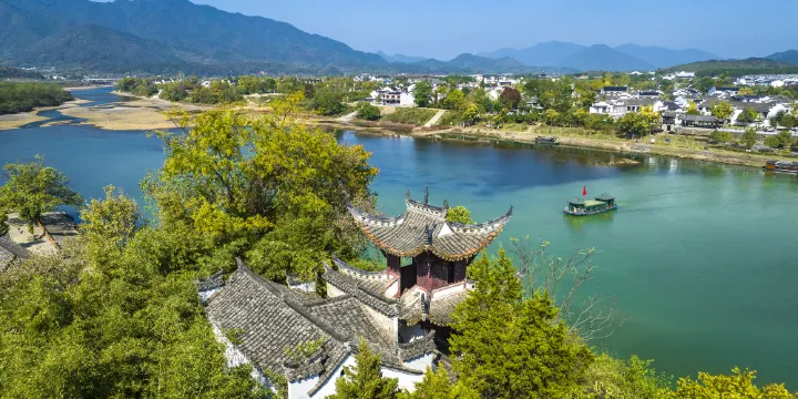 無論是走查濟、桃花潭一線的遊客,還是走太平湖、桃花潭一線的遊客,都建議最後回到桃花潭,在景區內住1晚,因為桃花潭的傍晚與清晨別有風情。傍晚在踏歌岸閣正好能看到西邊桃花潭的日落;清晨潭面霧氣瀰漫,挽著青山,朦朧了小舟,像一幅水墨畫,5、6月看到晨霧的機會會更大些。