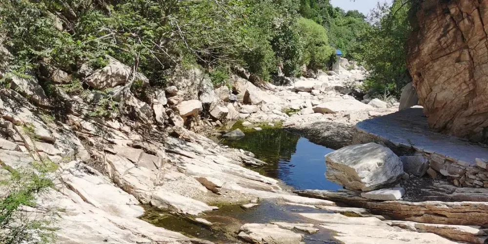 瀑布龍潭既雄偉壯觀,又湍急驚險,瀑布轟鳴,潭水急旋,峯崖陡峭,谷深路窄。登梯走橋時可從險中觀景,遊人追求險中景,甘願“鋌而走險”不臨險境,便不能領略險中景的妙趣,險中景給遊人增添了力量,大有不到真潭非好漢的感受。