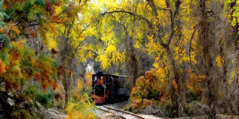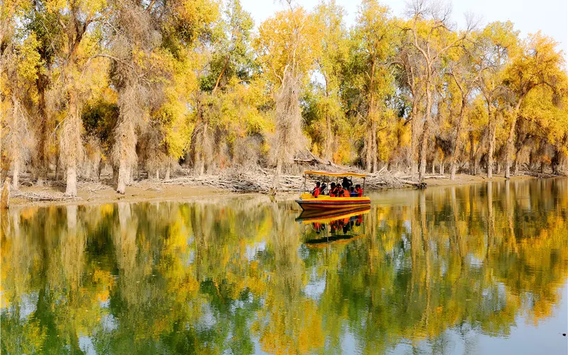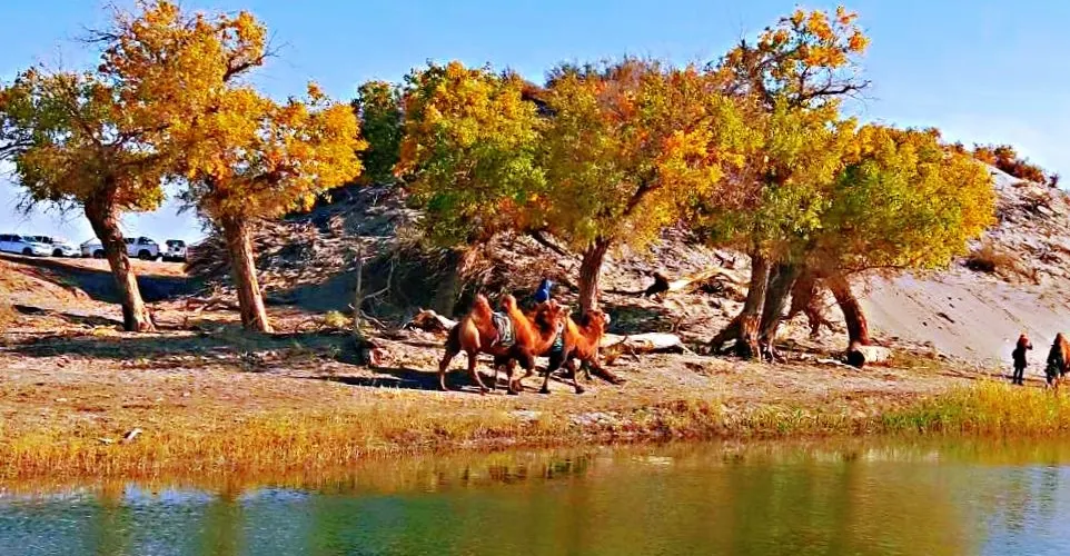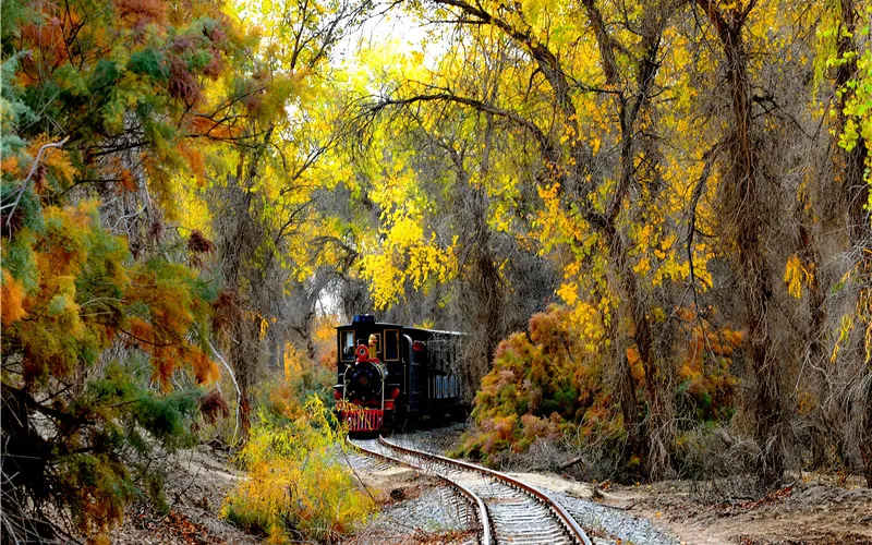 遊客乘坐觀光小火車,可一躍綠草地、二竄紅柳叢、三過蘆葦蕩、四跨恰陽河、五繞林中湖,盡覽大漠江南秀色。冬去春來,野駱駝、馬鹿等珍稀動物在林間閃現,天鵝、野鴨、大雁、鷗鳥等各種水鳥集隊飛翔,鳴啼於湖面之上。深秋時節,金色胡楊把塔裡木河兩岸妝點得如詩如畫、燦爛輝煌,成為攝影愛好者的創作天堂。