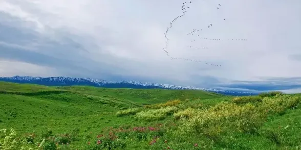 吐爾加遼草原幅員遼闊,三面環山,一年四季景色不同。春天草芽萌發,一片碧綠;夏天百花盛開,錯落有致;秋天牧草成熟,遍地金黃;冬天大雪覆蓋,漫漫潔白。