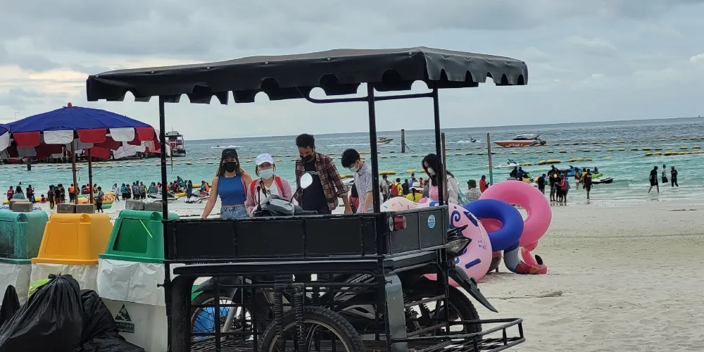 Ko Larn - Nual Beach,又稱為“猴子海灘”,位於泰國芭堤雅附近的格蘭島南端,以其清澈的海水和寧靜的氛圍吸引遊客。這個海灘以其相對較少的遊客和自然環境而聞名,是尋求放鬆和享受大自然的理想去處。