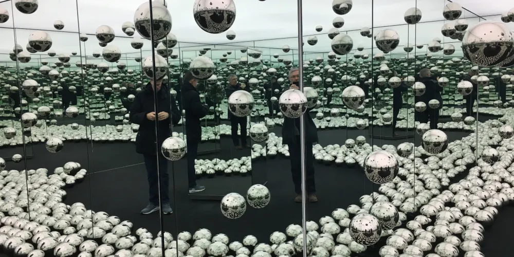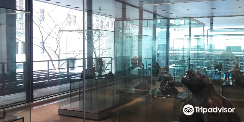 美術館門前有一座青銅雕塑作品,這是著名的英國雕塑家亨利·摩爾創作的。而在正門北側的水泥建築上多了一面炫目的玻璃牆和一個輕薄的玻璃翅膀,夜晚燈光的照射讓玻璃建築通體發光,成為夜幕下一道亮麗的風景線。