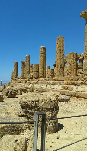 神廟的圓柱是巨大的雕塑(Telamoni),其中之一已被修複,陳列在考古博物館中,雕塑修建於公元前480年,可能在前406年迦太基人入侵時被毀,現在留在這裡的是仿製品。