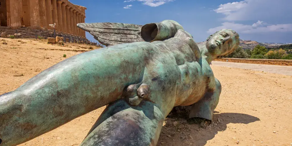 神廟的圓柱是巨大的雕塑(Telamoni),其中之一已被修複,陳列在考古博物館中,雕塑修建於公元前480年,可能在前406年迦太基人入侵時被毀,現在留在這裡的是仿製品。
