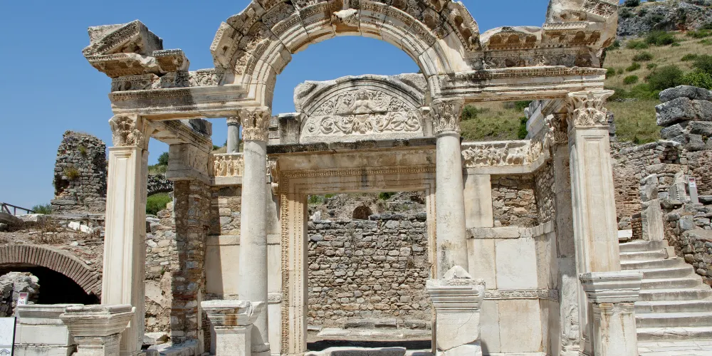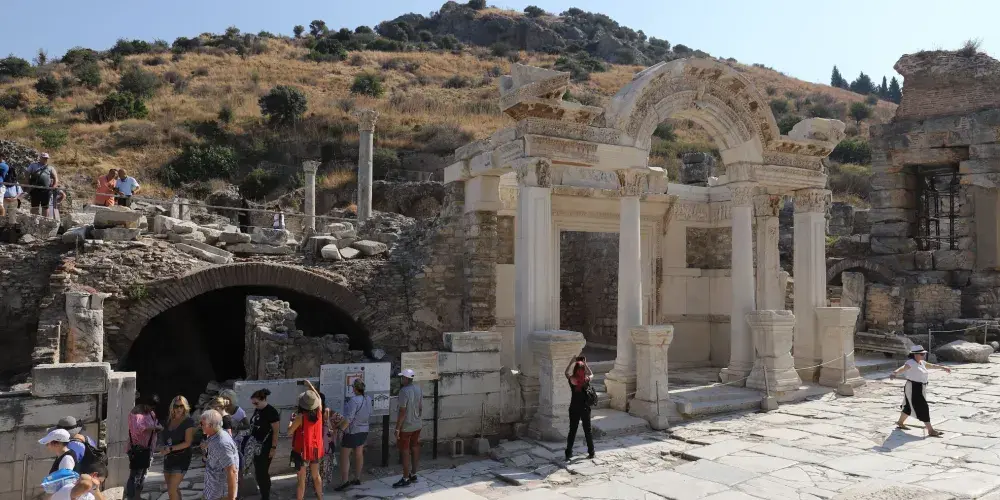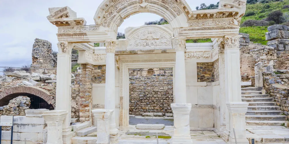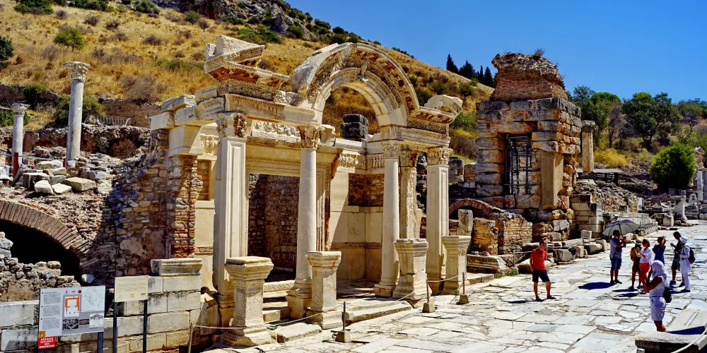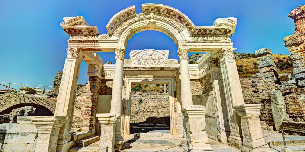 哈德良神廟是以當時的羅馬皇帝命名,是典型柯林斯式神廟的代表,是以弗所的精美建築之一,門口有保存完好的精緻拱門,十分值得駐足欣賞。