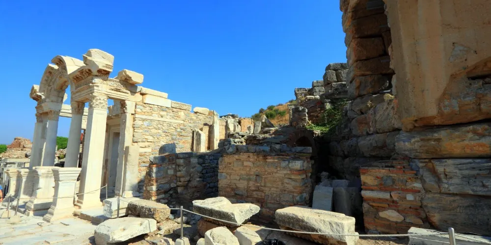 以弗所古城是地中海東部保存完好的一座古典城市,是體驗和感受羅馬時代生活的好地方。作為當年羅馬帝國在亞洲地區(亞細亞省)的首府,享有「亞洲第一個和大的大都會」之稱,世人說其:不是羅馬,勝過羅馬。這座美麗的城市一直以來是遊客造訪土耳其時鐘愛的地點之一,面積廣闊的古城遺跡,保存至今已有兩千餘年的歷史,如今是列入聯合國教科文組織列管的古蹟之一。目前的以弗所古城呈西北-東南走向,總長約兩公里,主要殘留建築有:石柱甬道、阿耳忒彌斯雕像、羅馬皇帝多米申(圖密善)祭壇、古希臘哲學家蘇格拉底壁畫、基督一性論學派學者狄奧多西浮雕、哈德良皇帝廟、聖約翰教堂、圖書館、劇場、浴室等。