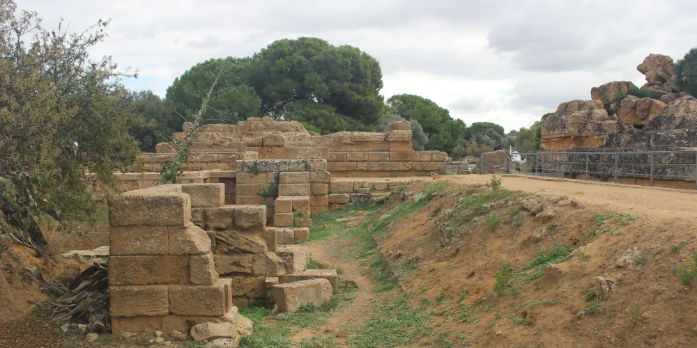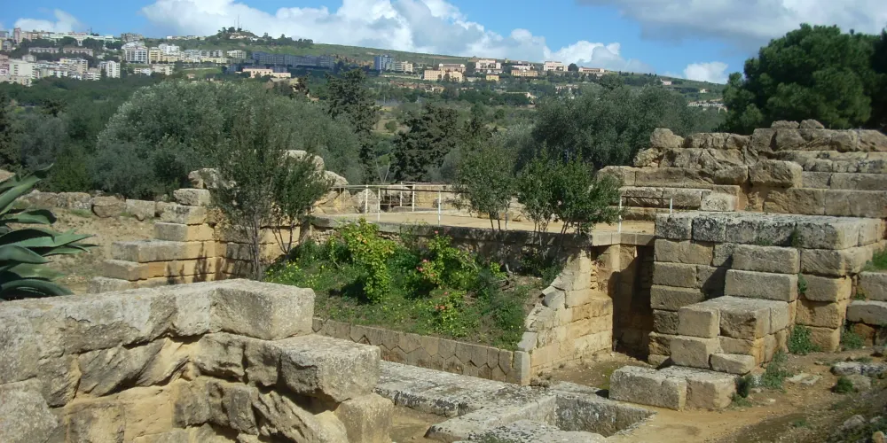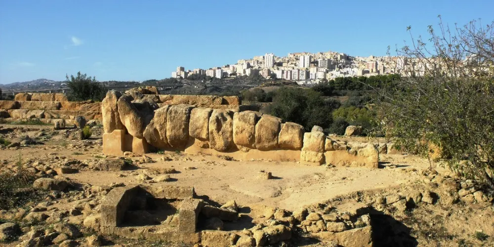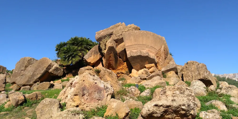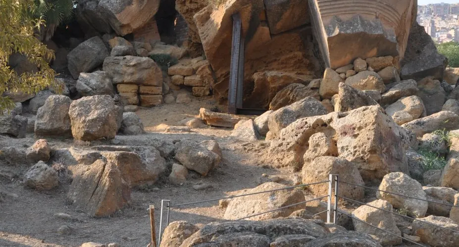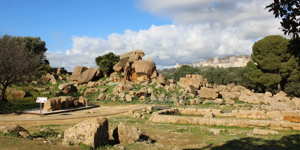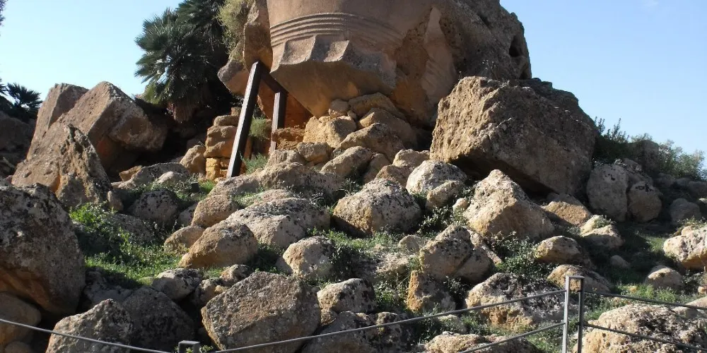 神廟的圓柱是巨大的雕塑(Telamoni),其中之一已被修複,陳列在考古博物館中,雕塑修建於公元前480年,可能在前406年迦太基人入侵時被毀,現在留在這裡的是仿製品。