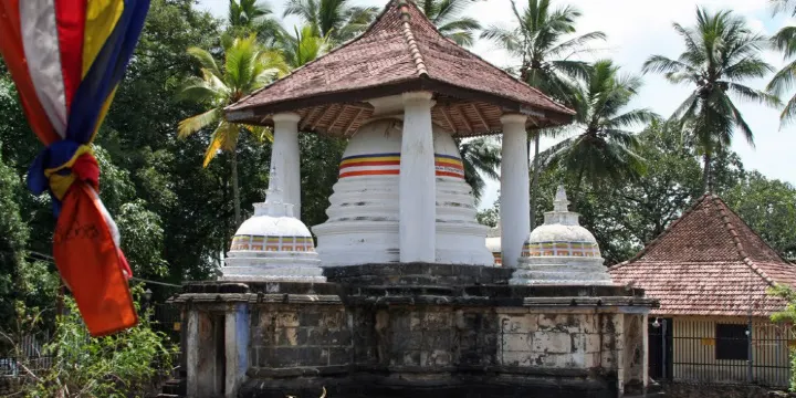 加達拉德尼亞寺是1344年在山崖上雕鑿而成,寺內有一尊卧佛,該寺曾被葡萄牙殖民者損壞,在18世紀重修的時候加上了一些印度風格的裝飾。寺廟介紹寺廟整體建築風格受達羅毗荼影響,寺廟的主殿為石殿,有佛像坐像,坐像背後是巨大的龍紋佛龕,以及四尊立佛。另外還有一間毗濕奴佛堂和佛塔。佛塔頂端有保護頂棚,四周有四個小佛塔,寺廟四周還分佈有很多小型水池。