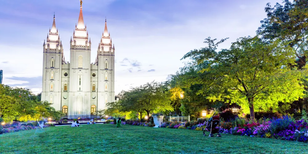 聖殿廣場(Temple Square)坐落於鹽湖城市中心,是猶他州鹽湖城市中心一組屬於耶穌後期聖徒教會總部的建築羣,包括魔門聖殿、鹽湖城大禮拜堂、鹽湖城聚會堂、海鷗紀念碑和兩個遊客中心,佔地10英畝,周圍有圍牆環繞。歷史悠久的聖殿廣場佔地面積超過14公頃(35英畝),周圍有漂亮的花園、建築和豐富的藝術文化遺產。廣場以六個尖塔寺廟為中心,是耶穌後期聖徒教會的全球中心教堂。這裡是猶他州很熱門的旅遊景點,有來自世界各地的義務導遊,同時也是總部辦公地、辦公樓、大會堂、楊百翰故居等都在此。1830年約瑟夫·史密斯創立後期聖徒教會,提倡多妻制,他死後,更多的人跟隨他的繼承人楊百翰進入猶他,建設了鹽湖城。