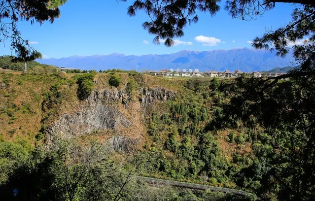 騰沖柱狀節理位於雲南省騰沖縣的龍川江畔。這裡矗立著一大片火山爆發時噴出的未露於地表的岩漿冷凝後形成的柱狀結晶,地質學上稱為“柱狀節理”,當地人則形像地叫它“ 神柱”。是我國目前發現的規模宏大、保存完整的騰沖柱狀節理。