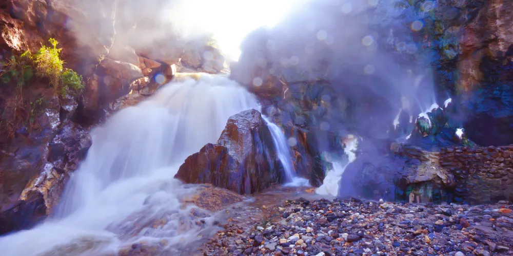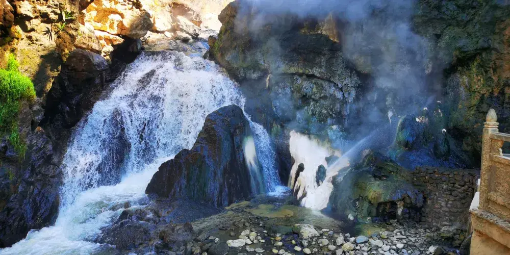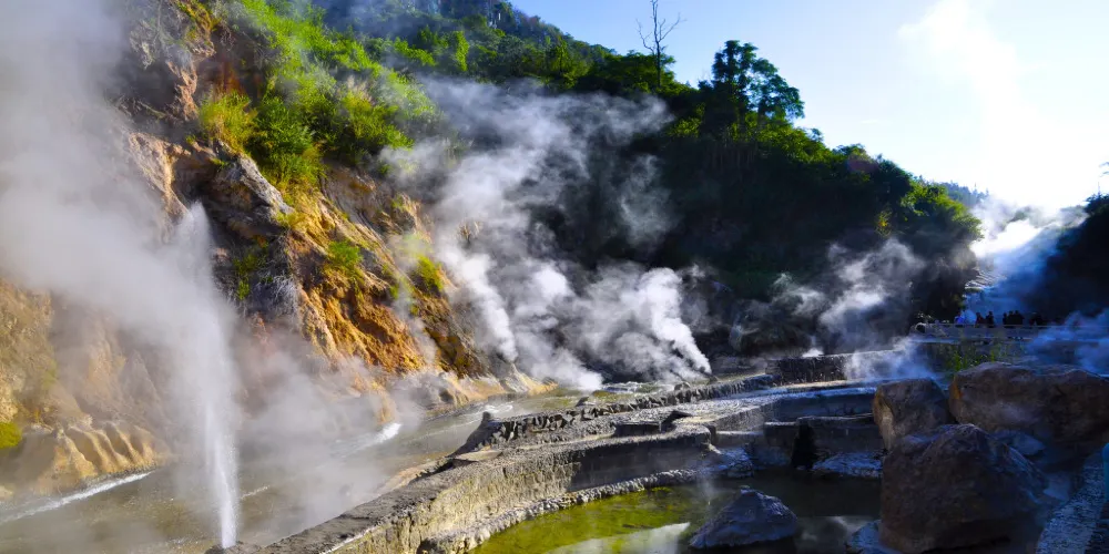 騰沖熱海溫泉景區裡到處都可以看到熱泉在噴湧,踏進景區,“熱海大滾鍋”很醒目,圓形溫泉池裡可以煮雞蛋。沿著景區內的環形步道慢慢前行,沿途會看到超多熱氣噴湧的泉眼。騰沖熱海溫泉景區內的浴谷溫泉內有露天和半露天的溫泉池20多個,美女池則有多個露天泡池、岩洞泡池和大游泳池組成。騰沖熱海溫泉景區提供住宿,還可在房間裡私密的溫泉里放鬆身心。