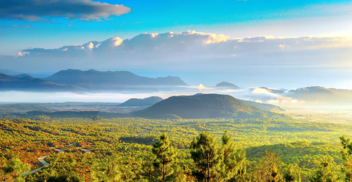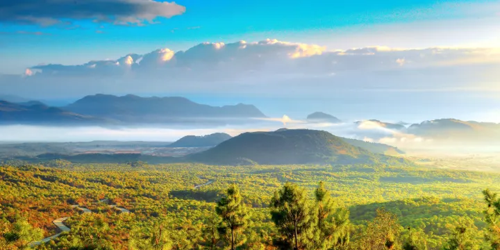 景區內大空山、小空山、黑空山一字排列,除火山錐體外,均被火山噴發後的溢流熔岩所覆蓋,四周火山地質地貌典型。遊客可以步行登上火山口,站在大空山火山錐頂遠眺,大面積熔岩流及熔岩台地盡收眼底。也可以步行乘坐熱氣球或動力三角翼從高空俯瞰火山。旁邊的小空山同樣壯觀,鍋口渾圓,還可以繞火山口走一圈,寓意「時來運轉」。