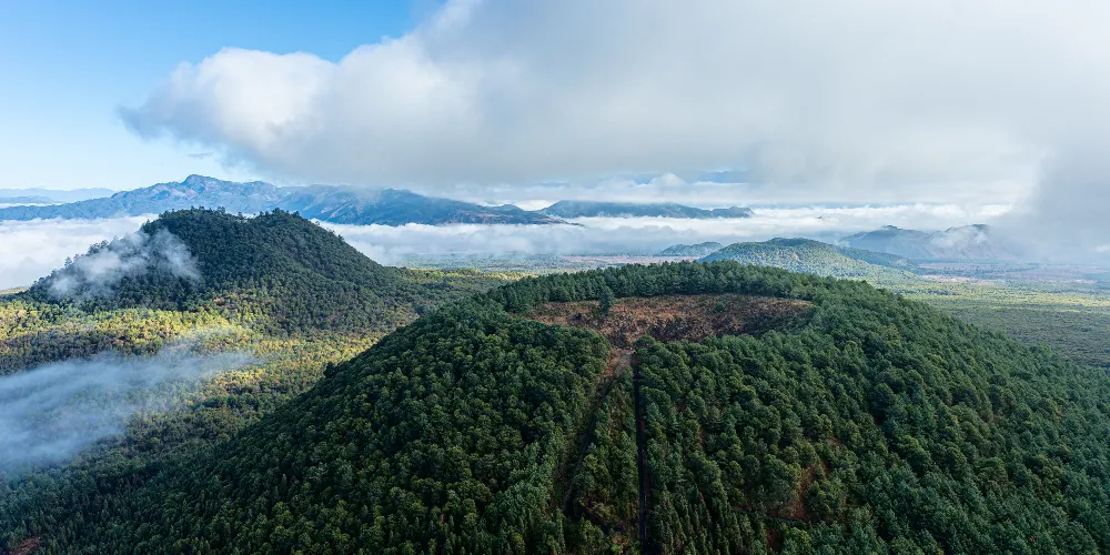 景區內大空山、騰衝火山地熱國家地質公園-小空山、黑空山一字排列,除火山錐體外,均被火山噴發後的溢流熔岩所覆蓋,四周火山地質地貌典型。遊客可以步行登上火山口,站在大空山火山錐頂遠眺,大面積熔岩流及熔岩台地盡收眼底。也可以步行乘坐熱氣球或動力三角翼從高空俯瞰火山。旁邊的騰衝火山地熱國家地質公園-小空山同樣壯觀,鍋口渾圓,還可以繞火山口走一圈,寓意「時來運轉」。