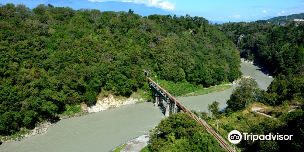 天龍峽位於長野縣伊那盆地的南端,是由天龍川長年侵蝕橫貫伊那山地的巖石形成的峽谷。兩岸有烏帽子巖和龍角峯等激動人心的岸壁一個連着一個,可乘坐遊船,欣賞其中勝景。從飯田線伊那八幡車站旁的辯天港順流而下,越過鷲流峽等險灘,時而被急流水花濺濕衣服的天龍川順流遊覽,是飽嘗大自然魅力的遊覽,是抵達終點在天龍峽車站旁的天龍峽港約需1小時的遊覽線。周圍以杜鵑花、櫻花的賞花勝地而聞名,並且秋天的紅楓葉也相當出色,來訪遊客絡繹不絕。從天龍峽港有順着緩緩的水流,約需50分鐘遊覽天龍川的天龍遊覽線。遊覽時,船家當場撒網捕撈河魚,在船上做好後供遊客品嚐,天龍川的勝景可從天龍峽車站附近的姑射橋觀賞,也可從離姑射橋500米下游的吊橋──杜鵑橋上觀賞。