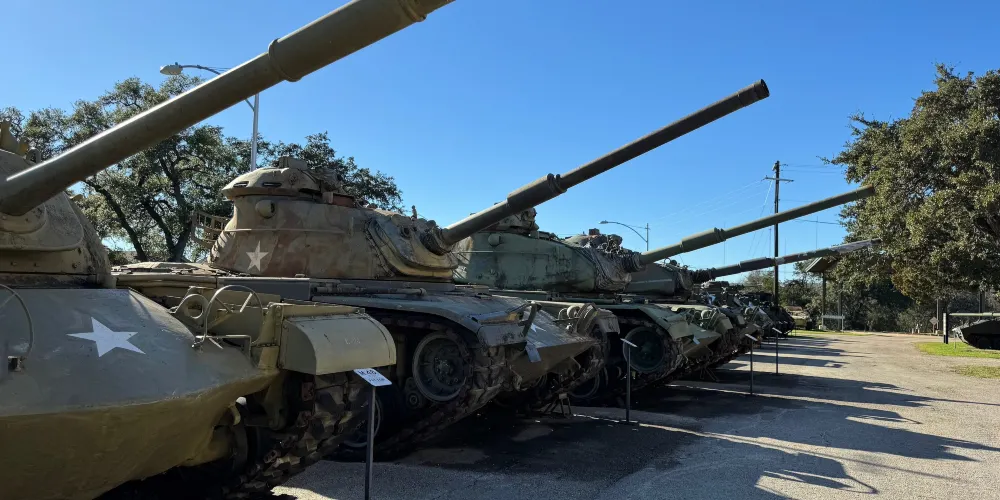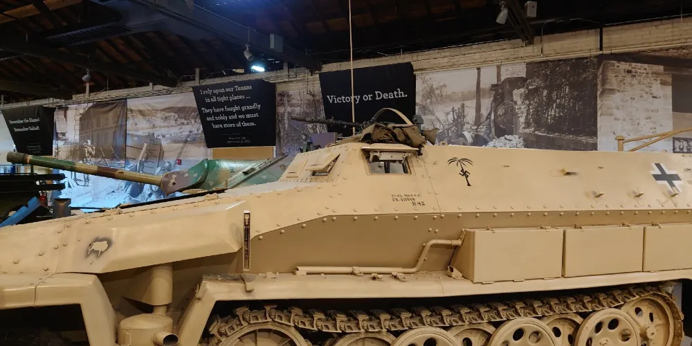 TexasMilitaryForcesMuseum是美軍駐軍的一個展示館,館內陳列着很多軍事裝備。