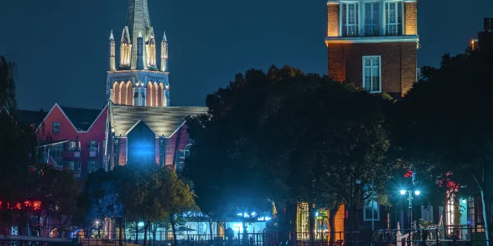位於松江的泰晤士小鎮是一座英倫氣息十足的高檔別墅區,四面撫水的秀美小島與後現代主義英式別墅建築盡現風華。整個小鎮很有英倫範兒,鋪滿方磚的街道和安寧悠閒的氣息讓人彷彿置身歐洲的風情小鎮。小鎮坐落著哥特式教堂、維多利亞式露台,還有城堡、噴泉、廣場和很多咖啡店、畫廊、美術館。這裡也成為年輕人拍攝婚紗、寫真的熱門地,電影《小時代》也曾在此取景。