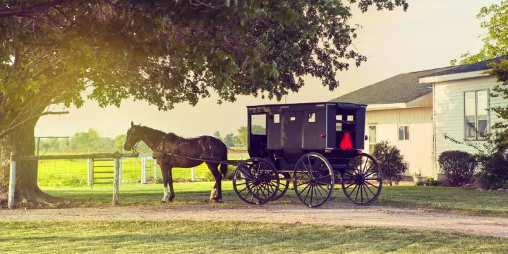 阿米什人是德國瑞士人的後裔,由於他們嚴格信奉基督教的阿米什教義,至今仍然穿著黑色調為主的傳統服裝,男子戴寬沿草帽,結婚前不得蓄鬚,婚後僅在下頜留長須。女子穿長裙加圍裙。他們保持中世紀謙卑的生活方式,拒絕包括電力、汽車在內的一切現代化機動設施。因為小孩子不去上學,美國還有專門的立法規定阿米什人不受全民義務教育的約束。而今,隨著社會開放,阿米什人也難以完全與世隔絕,現在阿米什農莊對遊人開放,可以參觀農牧場乃至阿米什住家,成為了一個著名的旅遊參觀項目。