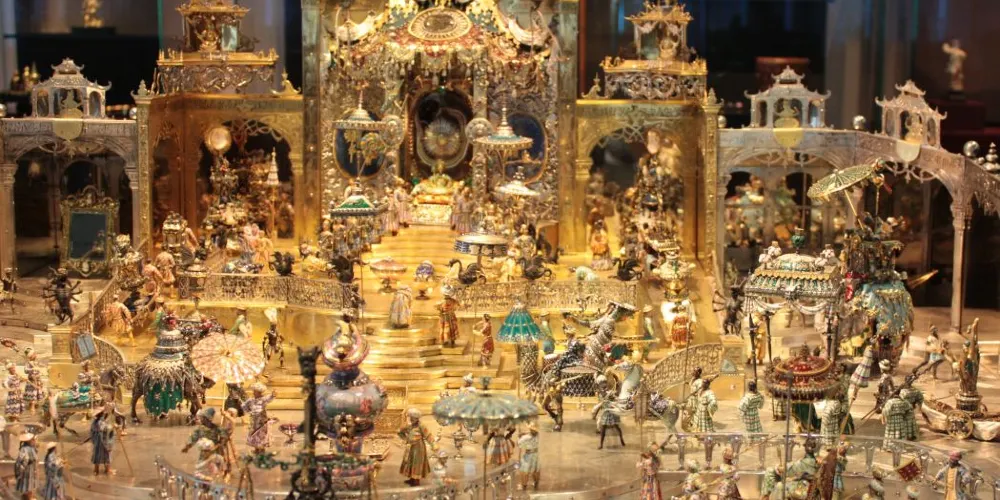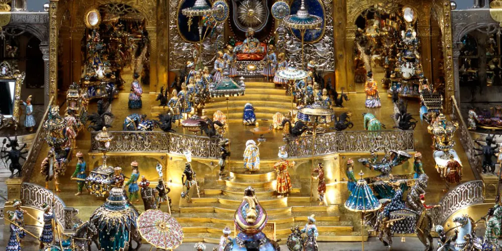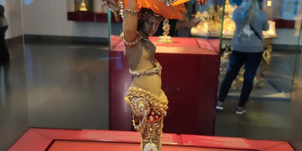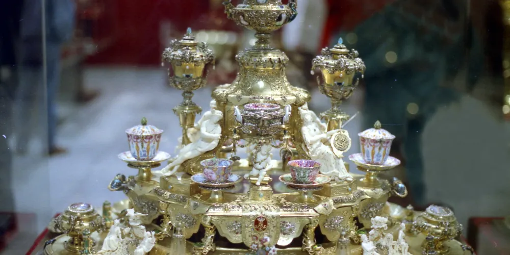 珍寶館分為老館(1樓)和新館(2樓),共2000平方米。其中老館分10個主題館,約有3000件藏品,珍藏了珠寶和金飾品加工藝術的傑作以及用琥珀和象牙製成的寶物、寶石器皿和具有高度藝術性的青銅塑像。