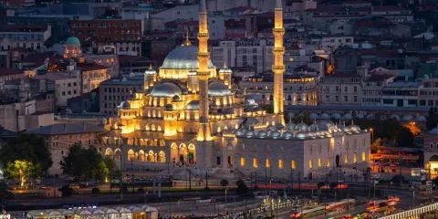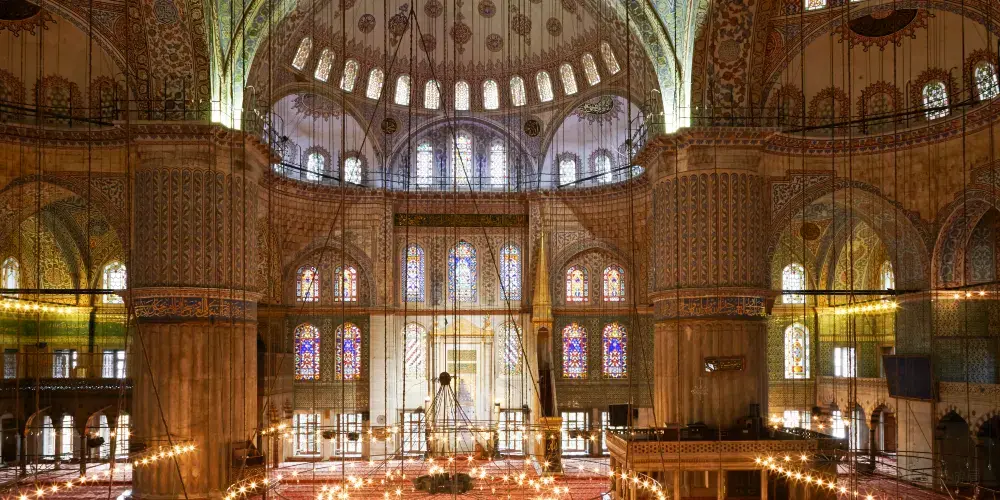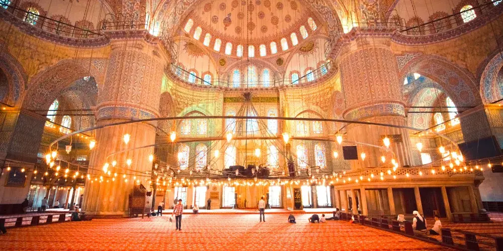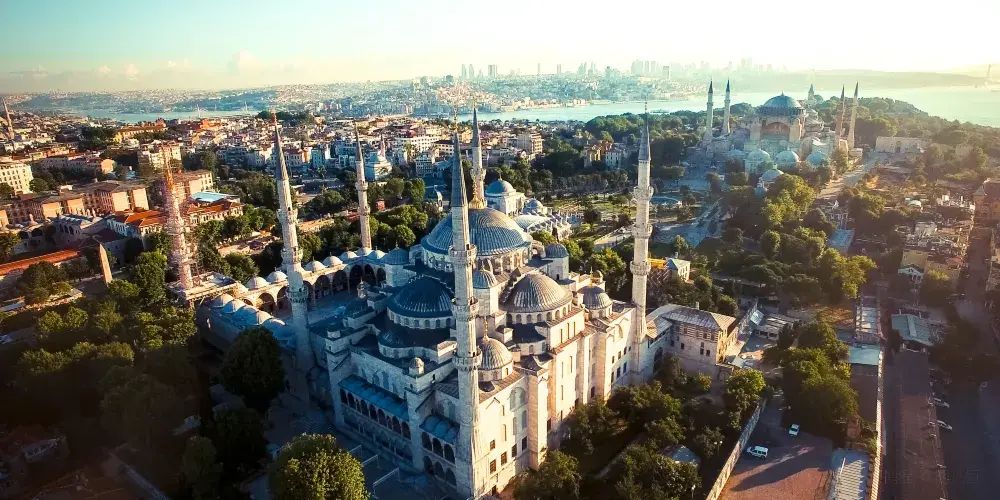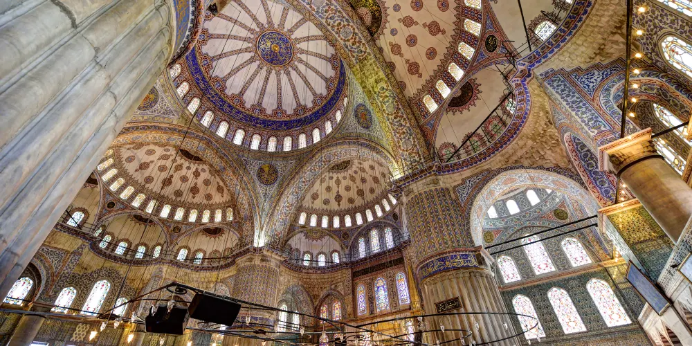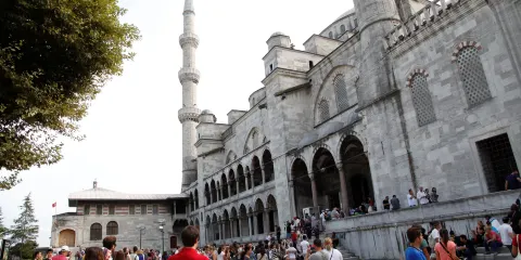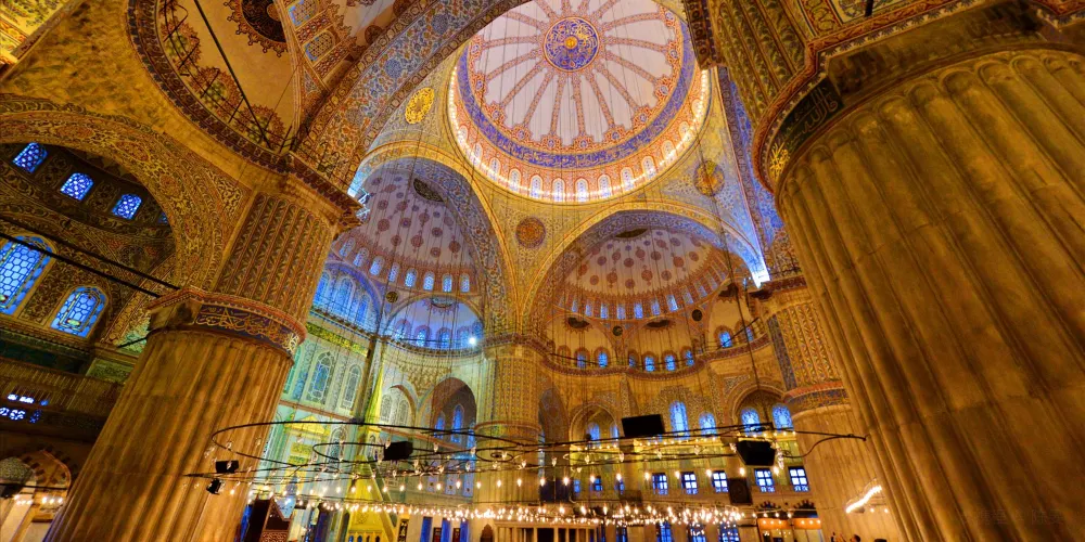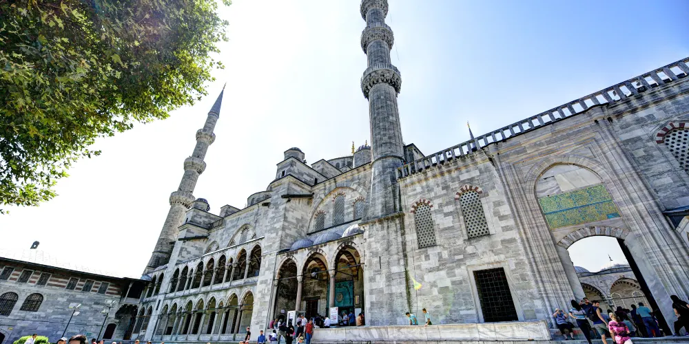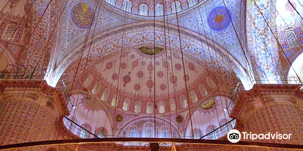 蘇丹艾哈邁德清真寺,位於土耳其伊斯坦堡,是一座歷史悠久的宗教和建築景區。作為奧斯曼帝國時期的建築傑作,這座清真寺以其壯觀的規模和精美的裝飾吸引著世界各地的遊客。該清真寺因其內部裝飾的藍色瓷磚而得名,這些瓷磚在陽光的照射下散發出迷人的光彩。這座寺的建築設計融合了傳統伊斯蘭建築風格與拜占庭元素,擁有六座高聳的宣禮塔和一個宏偉的中央圓頂。遊客可以在這裡欣賞到複雜的幾何圖案和書法藝術,感受建築的莊嚴與寧靜。除了建築之美,這裡也是一個活躍的宗教場所,信徒們在此進行日常祈禱。