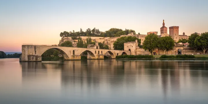 由於它是法國傳唱度極高的民歌《在阿維尼翁橋上(Sur le Pont d'Avignon)》的靈感來源,而令人嚮往。橋上殘存的貝內澤小禮拜堂則向人講述了牧羊人貝內澤受到神的啟示與差遣,瘋狂請求村民捐獻,終其一生辛苦蓋成這座連接兩岸的石橋,造福了當地居民。大橋北側的聖尼古拉禮拜堂,正殿呈船頭形,別具一格。