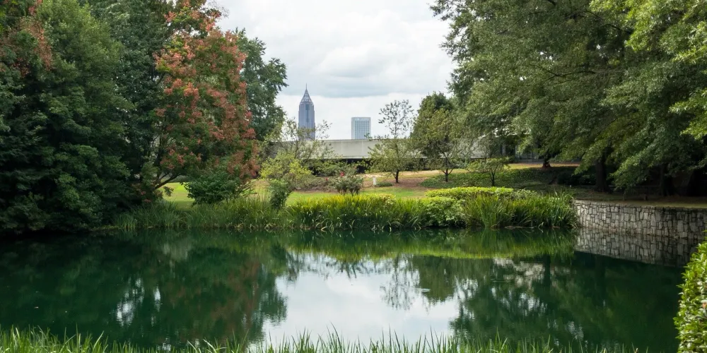 則評價亞特蘭大市中心的一個公園,公園內綠樹成蔭,還有綠油油的草地,很漂亮。還有一個湖,湖中有水鳥和水禽,當地人喜歡周末來這裡活動,有些人中午也會來到這裡野餐。