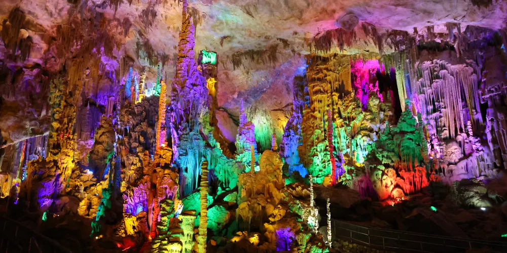 巴馬水晶宮位於有名的長壽之鄉河池巴馬。走進水晶宮,便能看到地上發育著的透明蘑菇狀晶體;空中垂懸著潔白的各種形態的鐘乳石,如水晶球、水晶花、水晶草一般;身邊還有通體透亮的玉柱、玉筍等,每一處景緻都讓人不得不驚嘆大自然的造化。