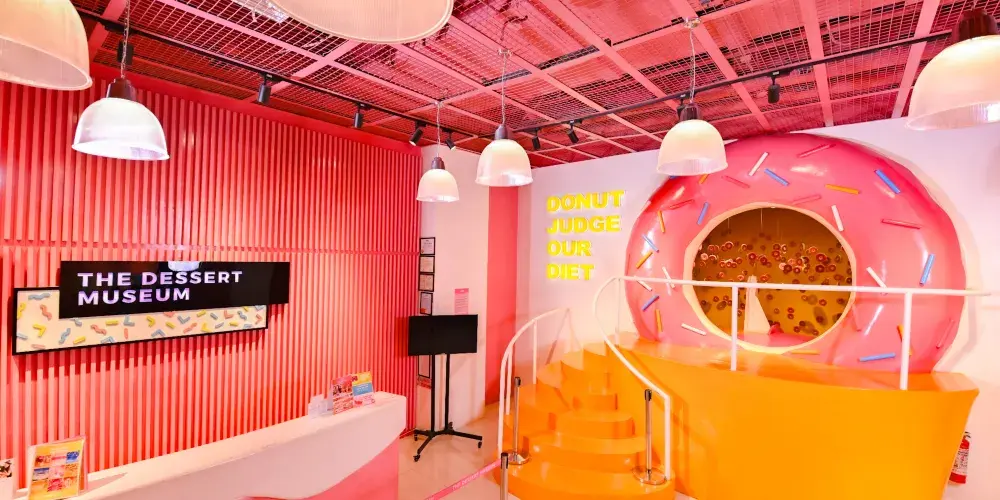 馬尼拉甜品博物館內共設有8間風格不同的甜品主題展區,這裡有氣球組成的冰淇淋,也有棉花糖造型的彩虹拱門,從軟甜的棉花糖,到巨型甜甜圈滑梯,各種色彩明麗、造型各異的藝術裝置,讓訪客彷彿進入了夢幻的童話世界。擺設風格甜美的各個甜品展區也十分適合拍照,和朋友們來這裡拍攝美美的照片和大家分享。每個展區都有導覽員給你介紹與甜點相關的奇聞趣事,你也有機品嘗可口的甜點。