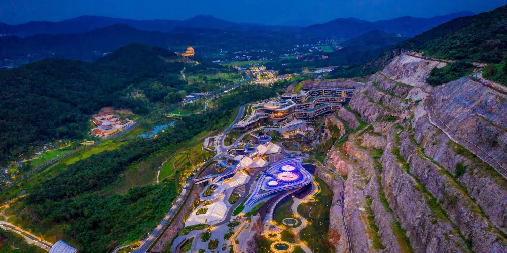 園博園佔地3.45平方千米,約5175畝,是長三角地區新興文旅綜合體,也是華東地區工業遺址文創化改造的人文示範基地。園區由多位國內外知名建築設計大師在“園林園藝”、“工業遺存”、“礦坑崖壁”等特色景觀資源的基礎上,打造了崖畔花谷、時光藝谷、蘇韻薈谷、雲池夢谷四大精美花園。
