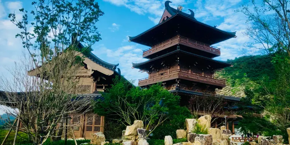 南京園景陽樓作為園博園內地標性建築和獨有文化標識,輔以山林嘉樹為美景,再現中國古典園林轉型期清華優雅的審美。登樓可盡攬園區全貌,是南京日落觀賞點。