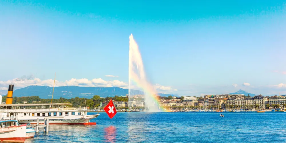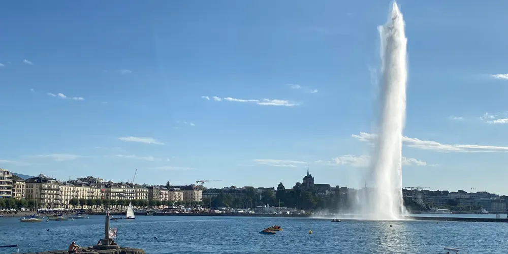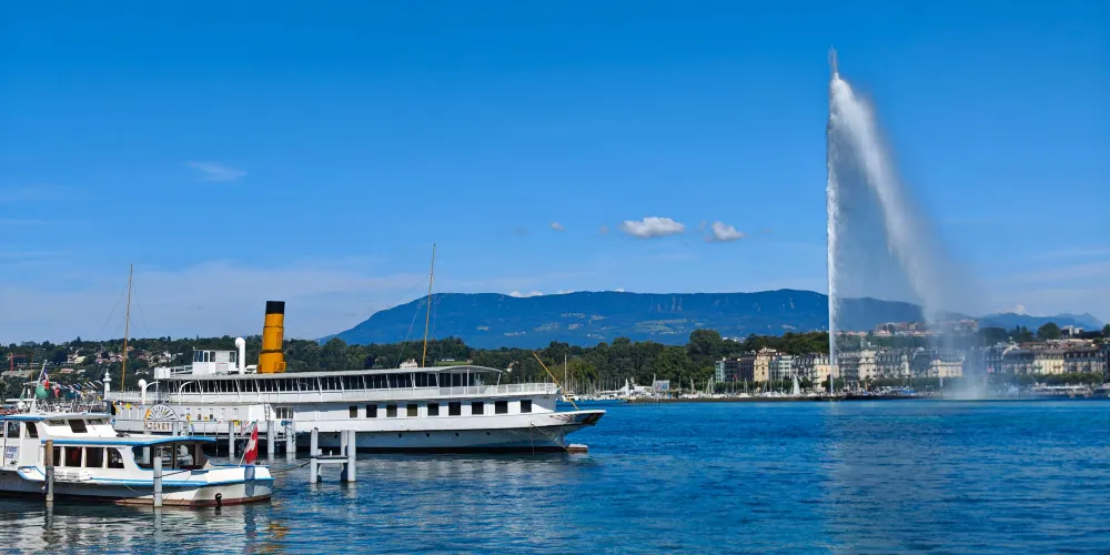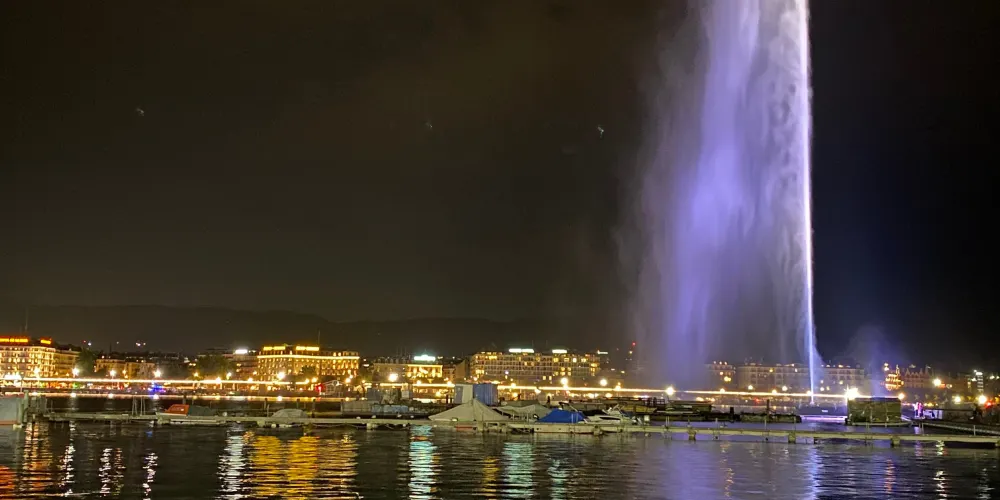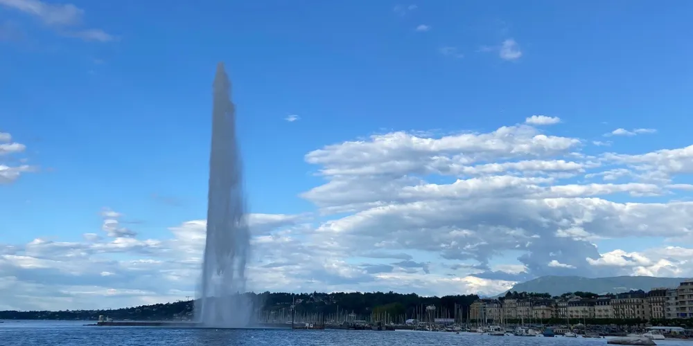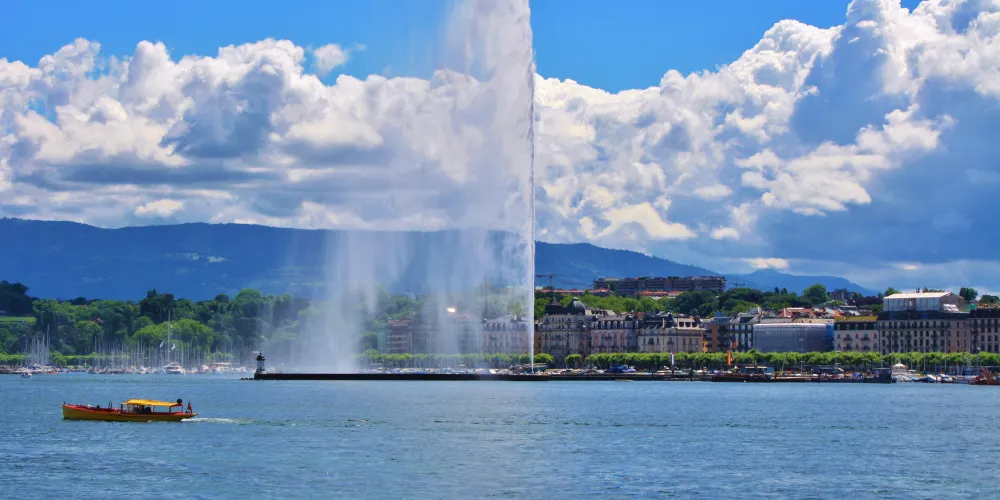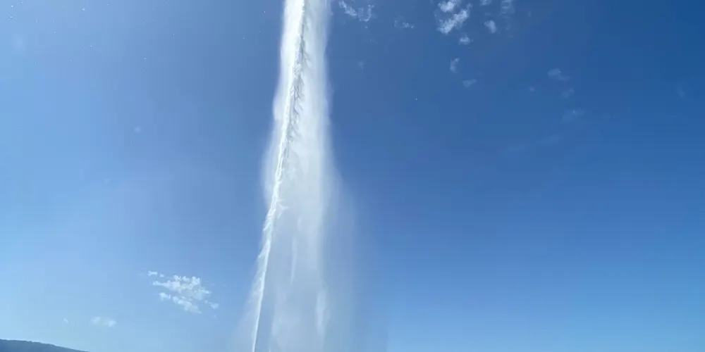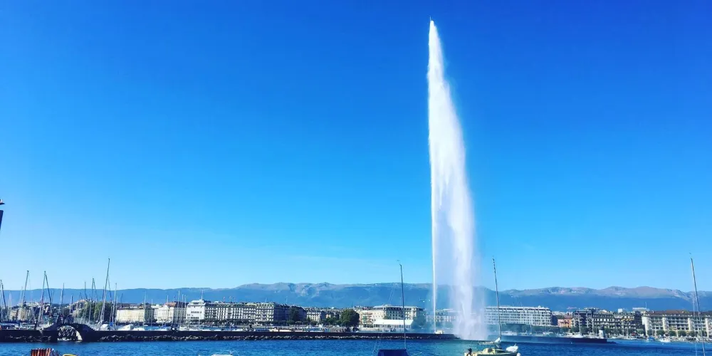 大噴泉位於英國花園附近的日內瓦湖面上,是日內瓦具有代表性的景觀之一。大噴泉宛若鯨魚噴出的水柱,有百餘米高、噴水量大,其壯觀景象從市中心很遠就能看見。夜晚時還有機會看到燈光照明下的大噴泉,更是壯觀。