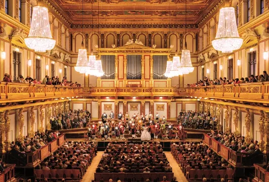 維也納金色大廳是維也納愛樂樂團的駐地,也是每年新年音樂會的舉辦地,這場音樂會吸引了全球觀眾的關注。除了新年音樂會,它還舉辦各種古典音樂演出,吸引了眾多國際知名音樂家和樂團。